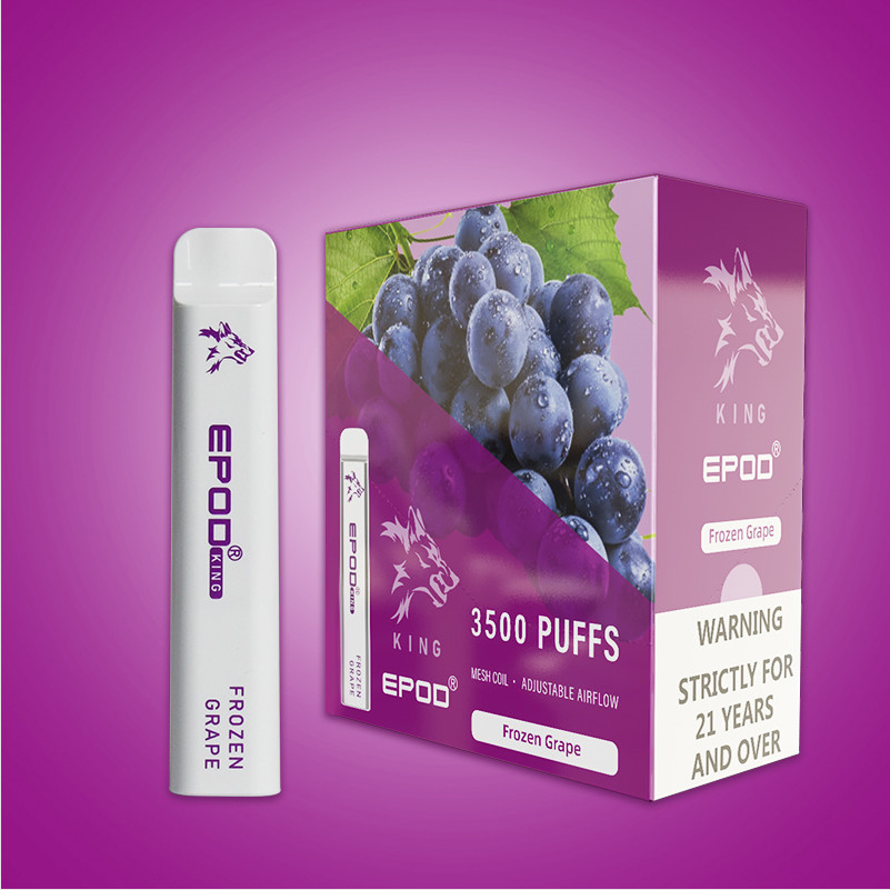 Le roi d'Epod est un dispositif jetable de 3500 souffles. Il a une batterie 850mAh avec le port rechargeable et est prérempli avec 10ml du l'e-liquide qui est nicotine de 5%. Le roi d'Epod comporte également un intérieur de bobine de maille du dispositif pour la production sans précédent de saveur et elle comporte également une caisse en caoutchouc de silicium pour l'embouchure sur le dispositif de vape, l'Epod te fournira environ 3500 souffles de saveur étonnante et vient dans un grand choix de saveurs pour satisfaire vos cravings de vape.
